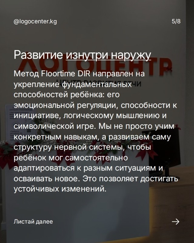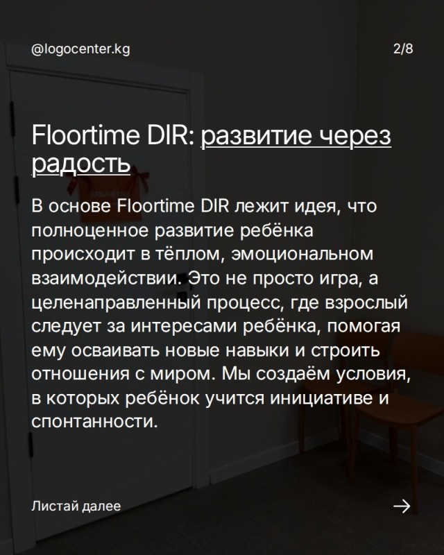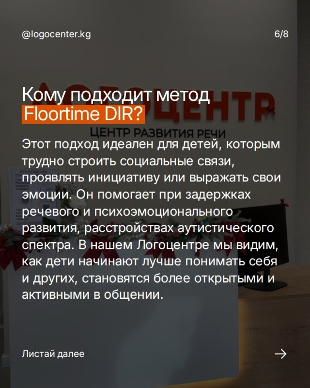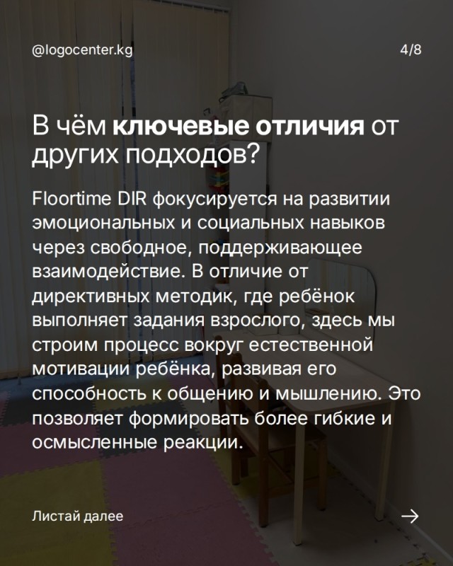 Каруселде биз DIR/Floortime эмне экенин, кимдерге ылайыктуу экенин жана кайсы багыттарда жардам берерин кеңири түшүндүрдүк. Бул ыкма шаблон боюнча эмес, баланын өз темпин, кызыгуусун жана эмоционалдык байланышын эске алуу менен жүргүзүлөт.