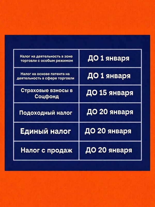 Сроки оплаты налогов: январь 2026