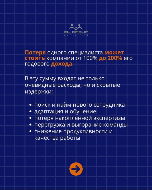 📉 Потеря одного специалиста может стоить компании от 100% до 200% его годового дохода.