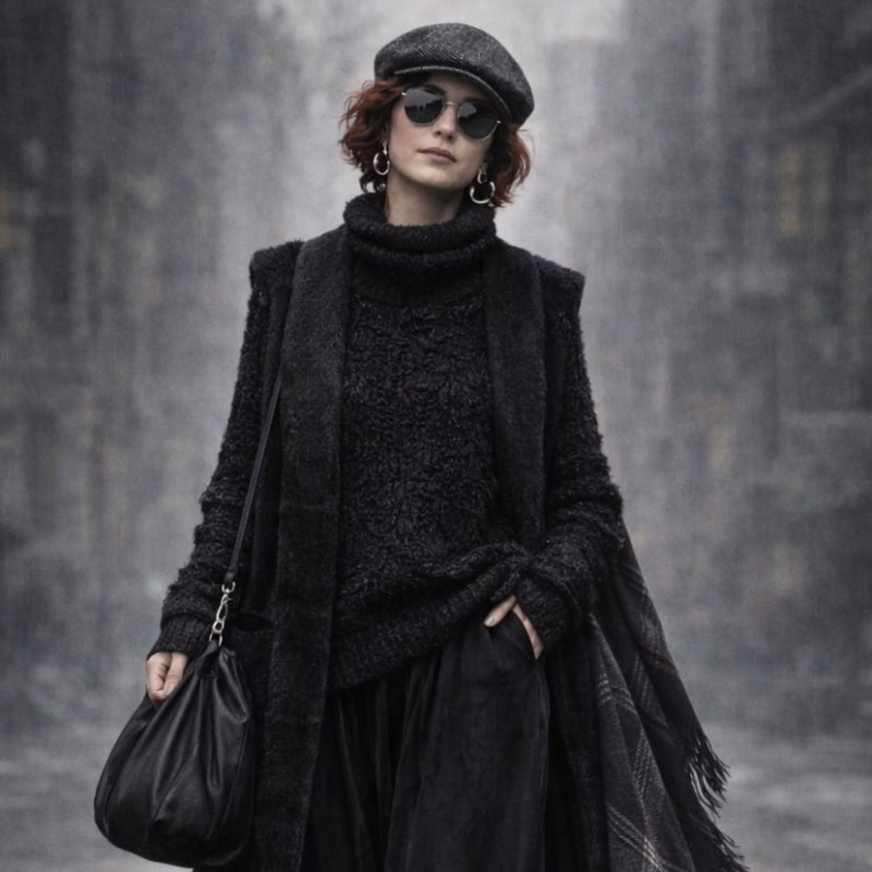 На фото образ, который я собирала вместе с ИИ, стилизуя свой гардероб в логике Йодзи Ямамото. Казалось бы, обычная история про одежду. На самом деле — очень показательный учебный кейс.