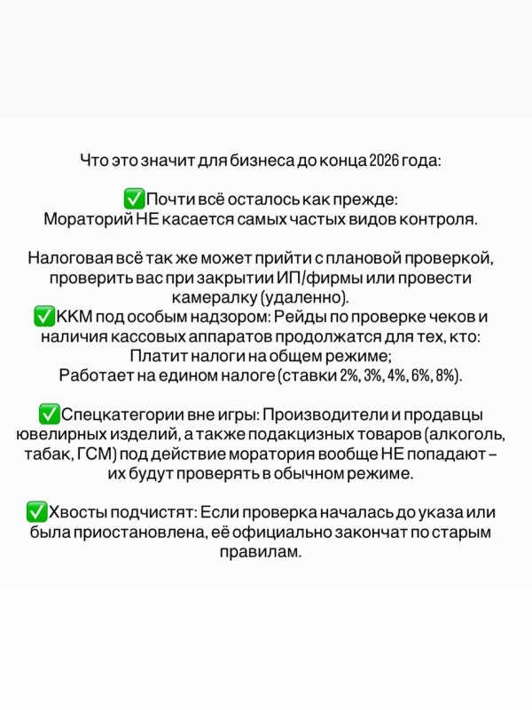 Введение временного запрета (моратория) на проведение налогового контроля субъектов предпринимательства