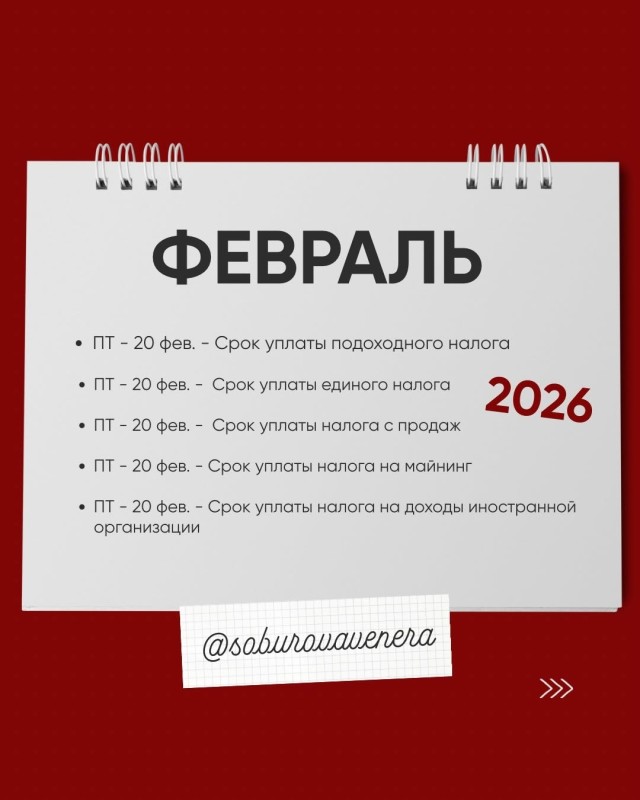 Календарь для налогоплательщиков