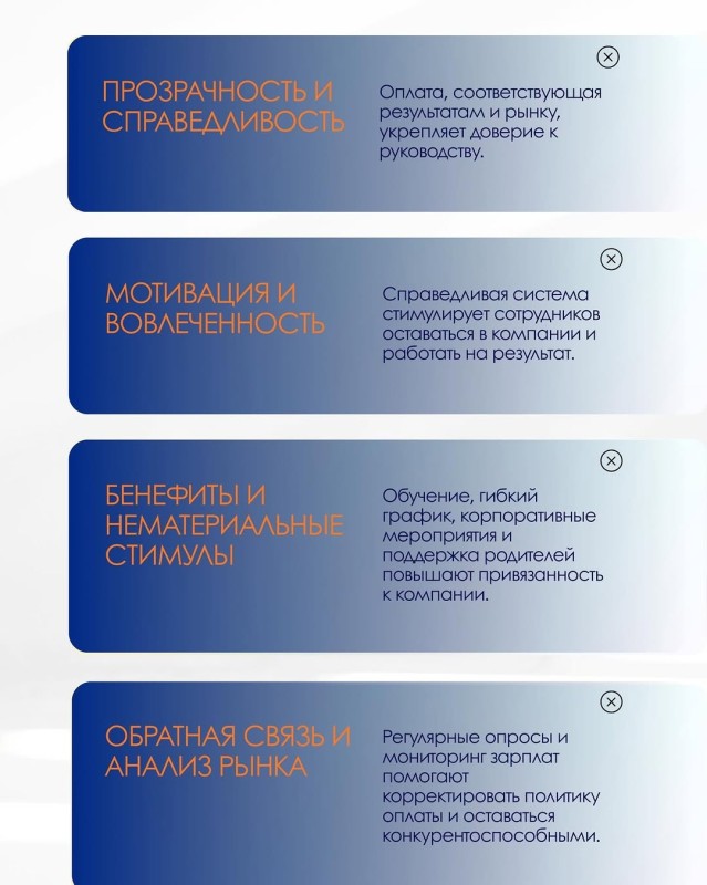 Справедливая зарплата формирует доверие, вовлеченность и лояльность сотрудников.