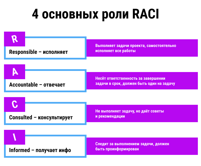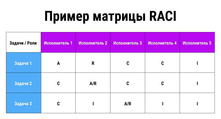 - A – Accountable (несёт финальную ответственность).