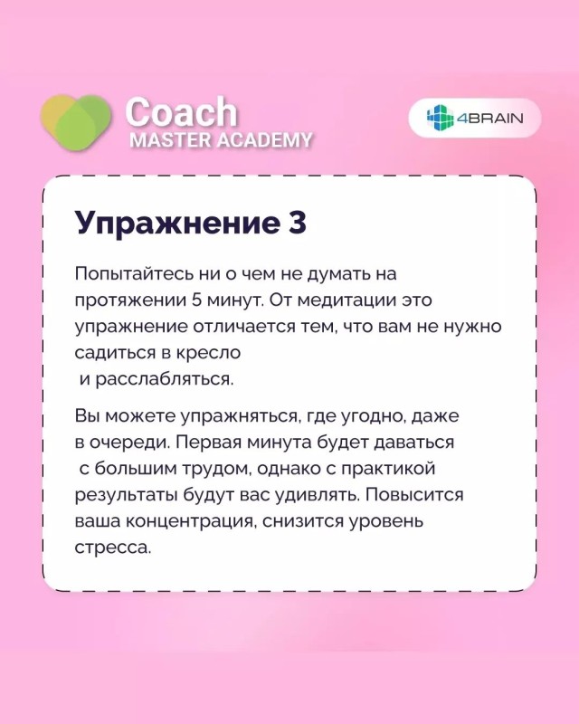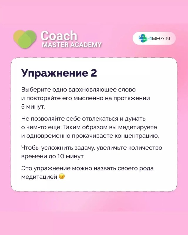 Но интересно то, что на развитие #концентрации достаточно 5 минут ежедневно, а результат будет накапливаться и влиять на многие другие способности.