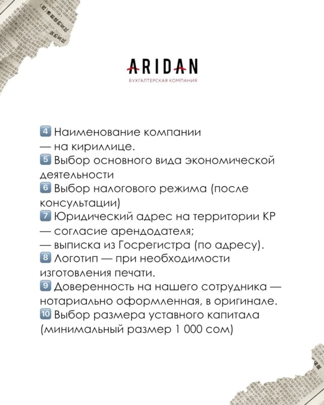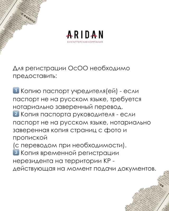 Чек лист для регистрации ОсОО (для нерезидентов)
