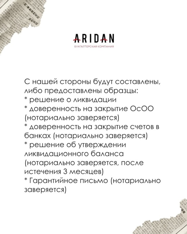 Краткий чек-лист для ликвидации "ОсОО"
