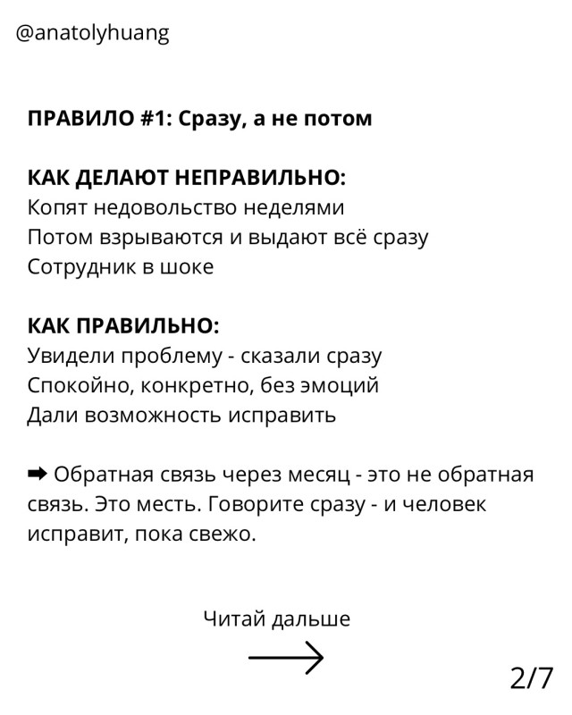 Пролистайте карусель - там 5 правил обратной связи, которые работают.