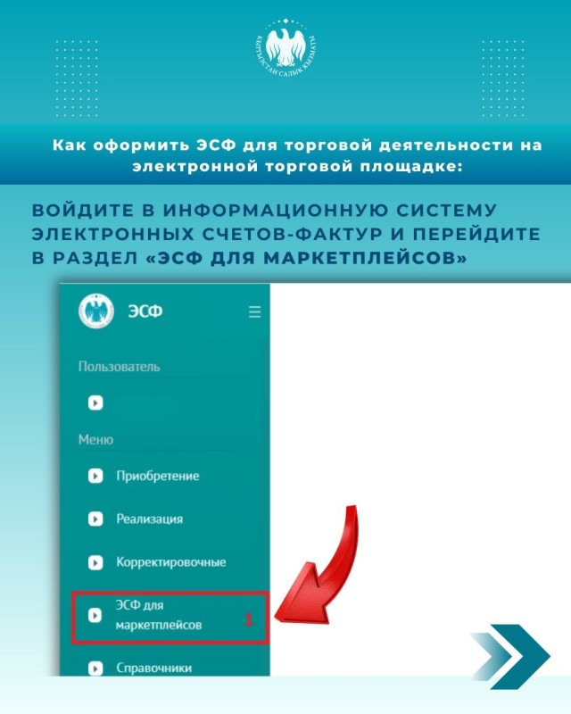 Войдите в информационную систему электронных счетов-фактур (ИС ЭСФ) и перейдите в раздел «ЭСФ для маркетплейсов».