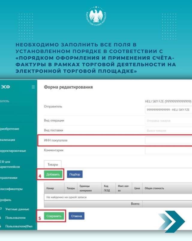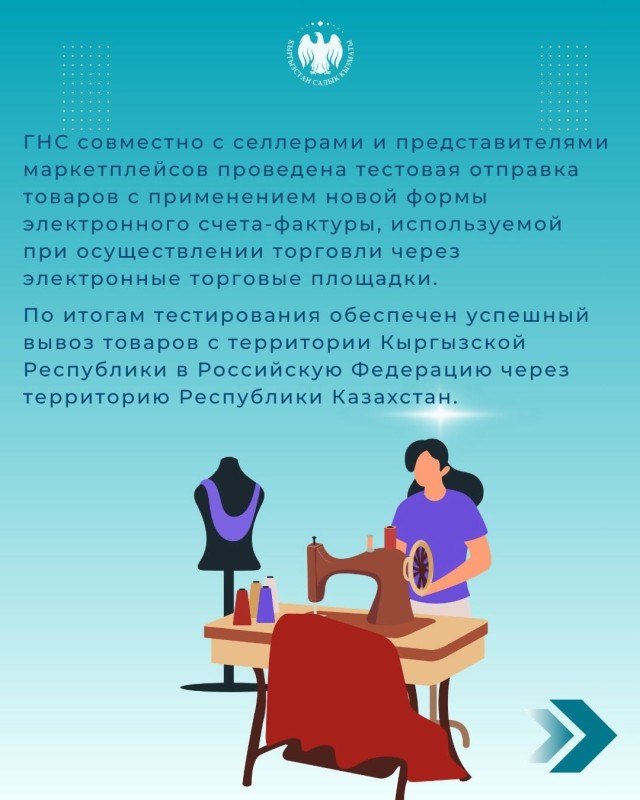 Государственной налоговой службой Кыргызской Республики совместно с селлерами и представителями маркетплейсов проведена тестовая отправка товаров с применением новой формы электронного счета-фактуры, используемой при осуществлении торговли через электронные торговые площадки.
