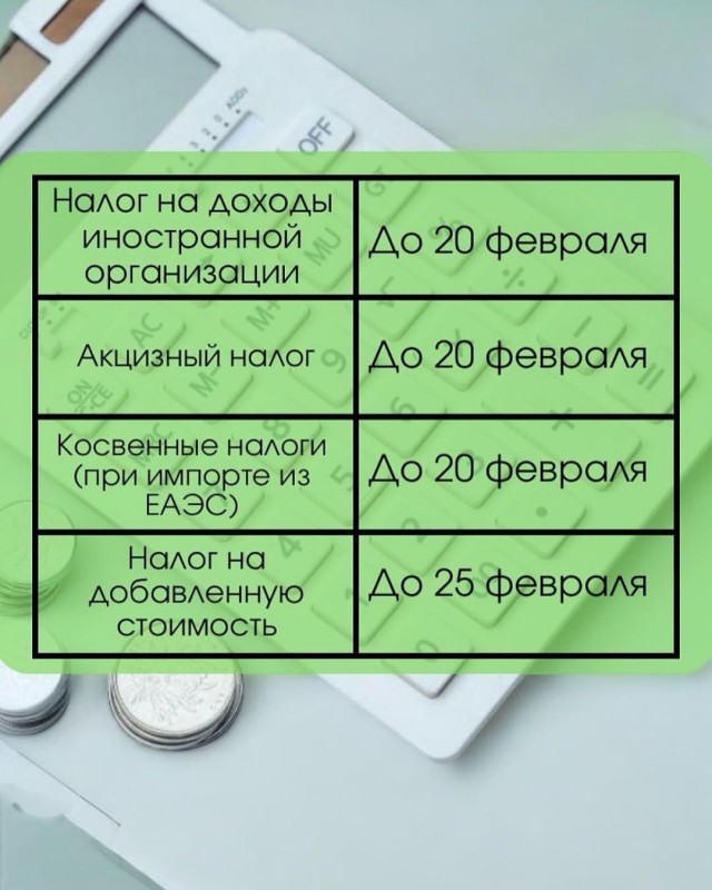 Сроки оплаты налогов на февраль 2025