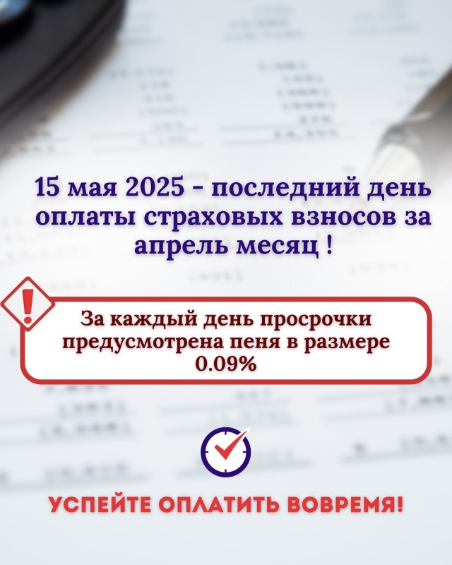 15.05.2025 последний день оплаты страховых взносов за апрель!
