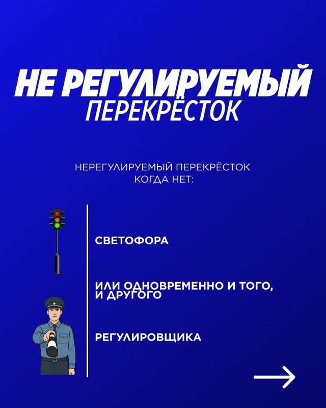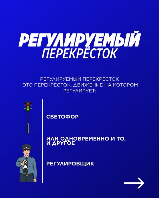Регулируемые — это перекрёстки, где движение контролирует светофор или регулировщик
