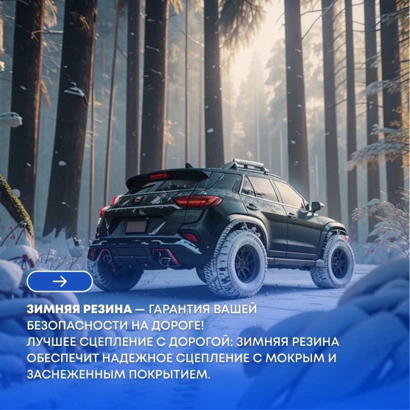 Зимняя резина — это не просто сезонная необходимость, а твоя гарантия безопасности на дороге. Она обеспечивает отличное сцепление на льду, устойчивость на снегу и уверенность даже в самых сложных погодных условиях🛞
