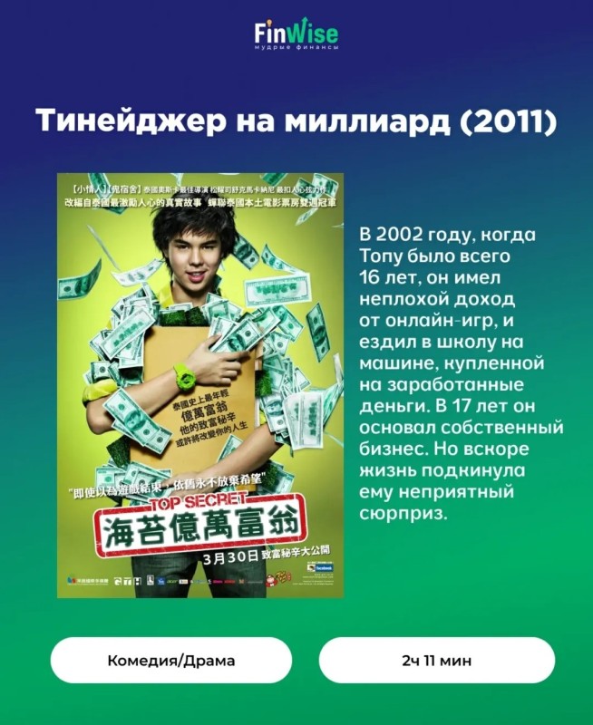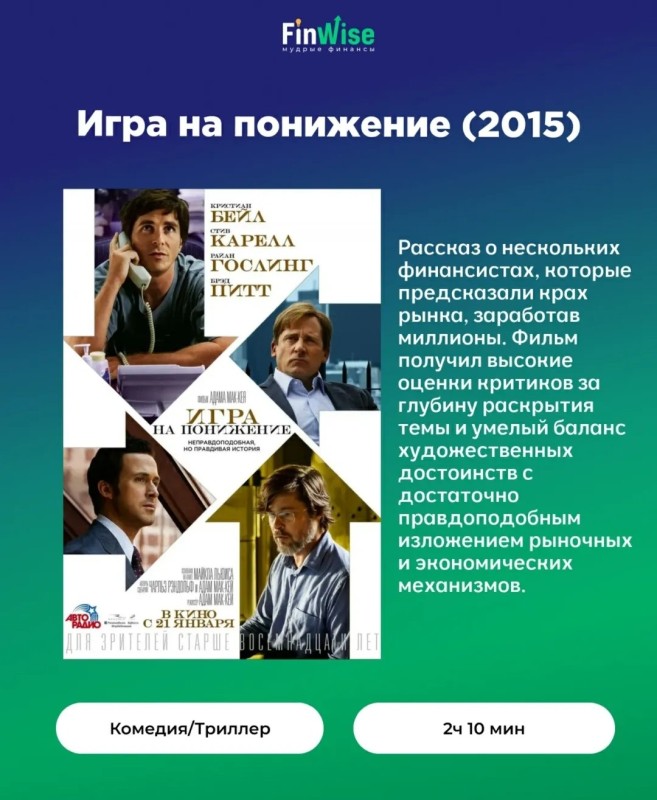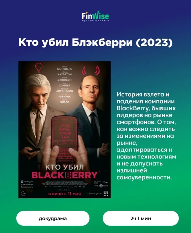Мы собрали для вас подборку фильмов, которые помогают понять суть бизнес-процессов, рисков и стратегий. ☝️