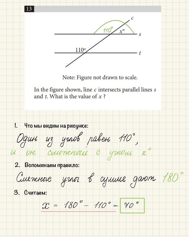 На этом слайде — простой пример из SAT Math, который мы разобрали в понятной и наглядной форме 💡