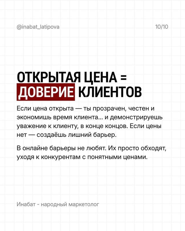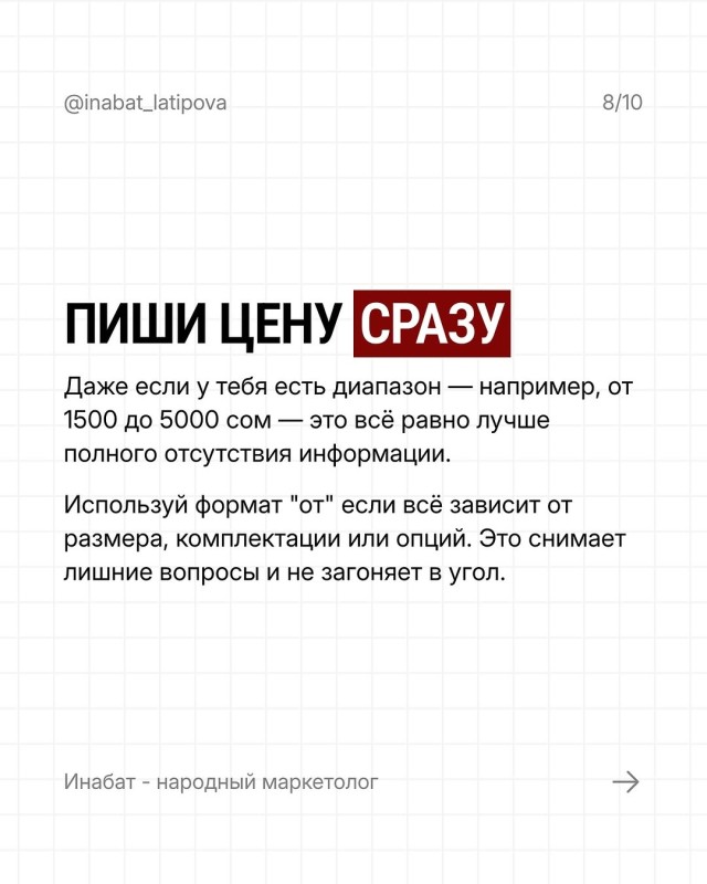 Не заставляйте клиента выпрашивать цену. Цена в посте = уважение к клиенту и к своему времени (и внимание, лайфхак: нет лучше фильтра чтоб понять наш клиент/ или нет)