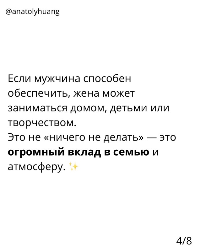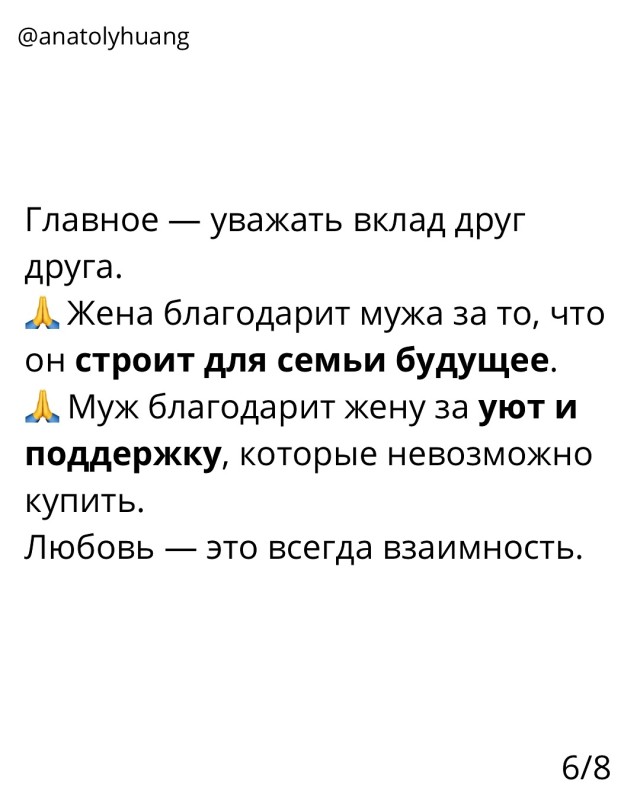 Ребят, цените вклад друг друга в семью.