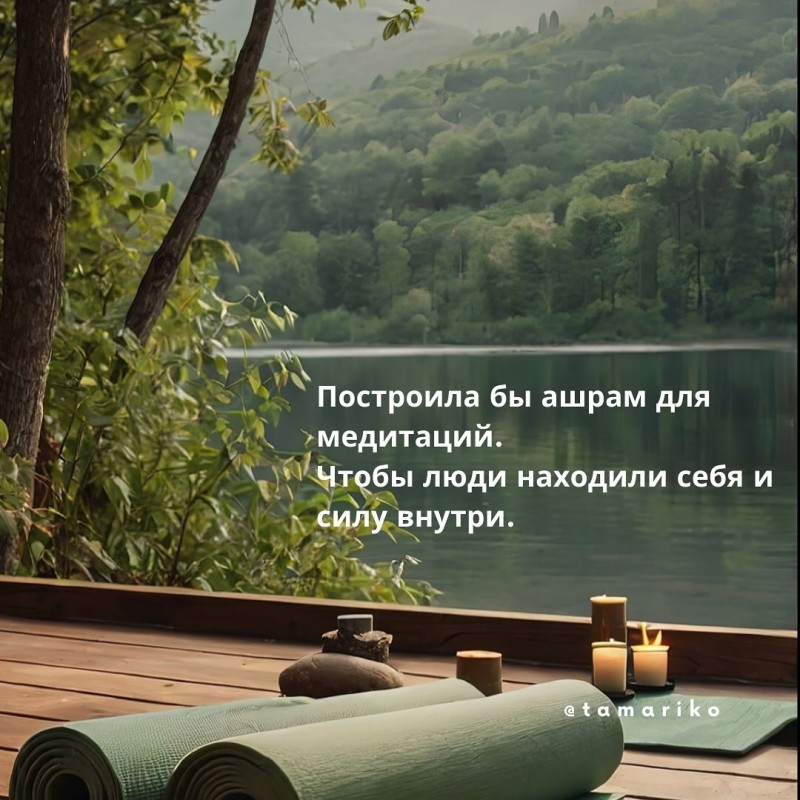 И я бы построила ашрам для медитаций. Место силы и тишины, где можно остановиться, услышать себя и наполниться энергией.