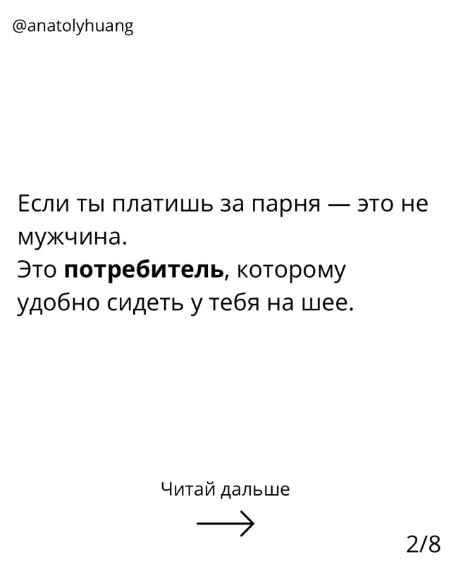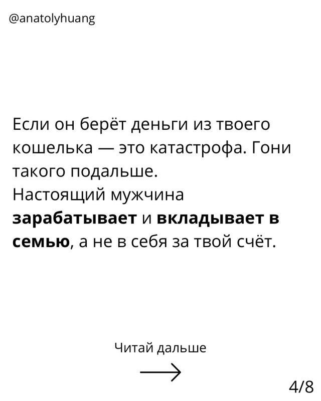 Дорогие женщины, поймите: это не про заботу и не про уважение. Это про слабого мужчину, который готов сидеть у вас на шее.