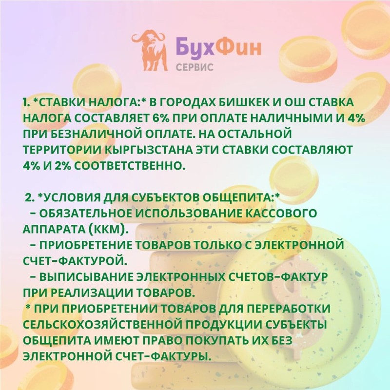 При выборе упрощенного режима на основе единого налога в Кыргызстане есть различные ставки в зависимости от региона и способа оплаты. Например, для городов Бишкек и Ош ставка налога составляет 6% при оплате наличными и 4% при безналичной оплате.