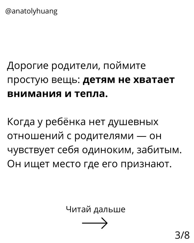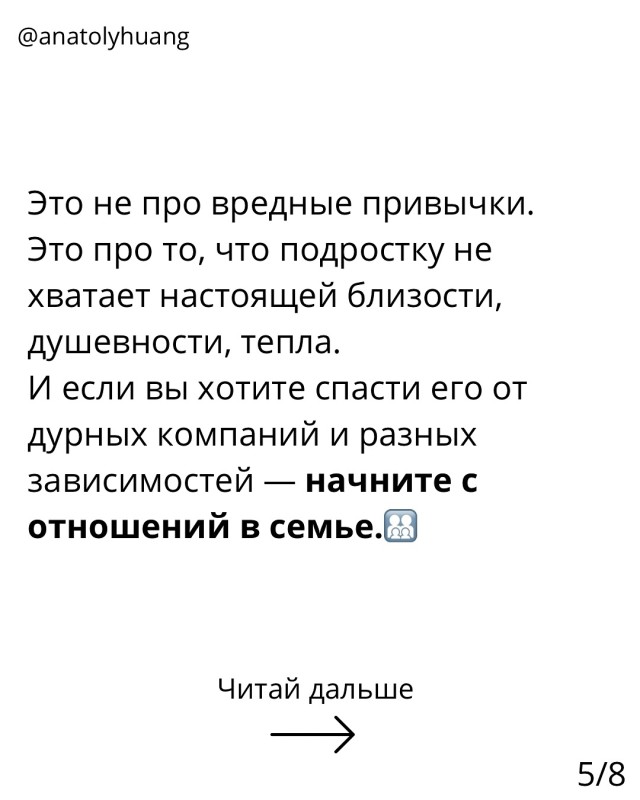 Ребят, поверьте моему опыту. Я видел десятки семей, где родители приходили и говорили: «мой сын спился», «дочка связалась не с теми людьми». Но когда начинаем разбирать - оказывается, проблема не в ребёнке. Проблема в том, что дома он не чувствовал тепла.