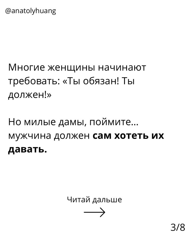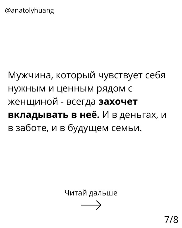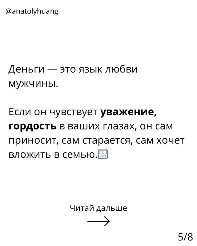 Мужчина не жмот по природе. Он просто перестаёт давать, если рядом с ним нет уважения. Дайте ему веру и поддержку — и вы удивитесь, как быстро он сам начнёт вкладываться в вас.
