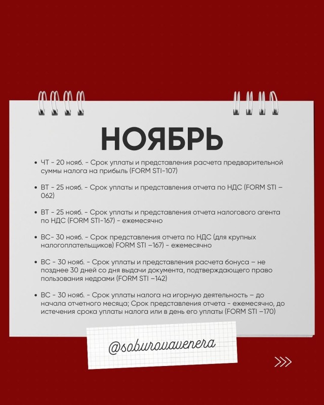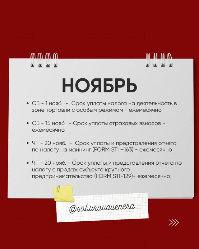 Календарь для налогоплательщика
