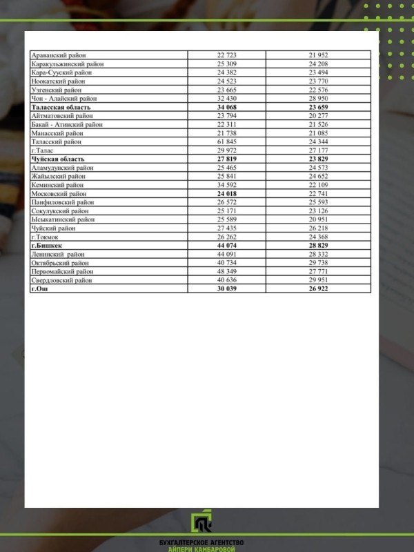 взносов на 2026 год в разрезе районов и городов Кыргызской Республики