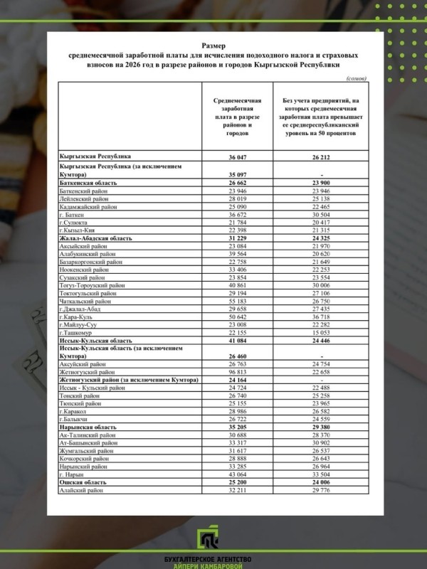 взносов на 2026 год в разрезе районов и городов Кыргызской Республики