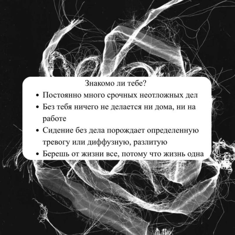 Иногда за нашей вечной спешкой и бесконечными делами скрывается желание не чувствовать пустоту и тревогу. Но важно помнить — вы ценны не только в действии, но и в покое. Дайте себе право на отдых и тишину, чтобы беречь сердце и душу.
