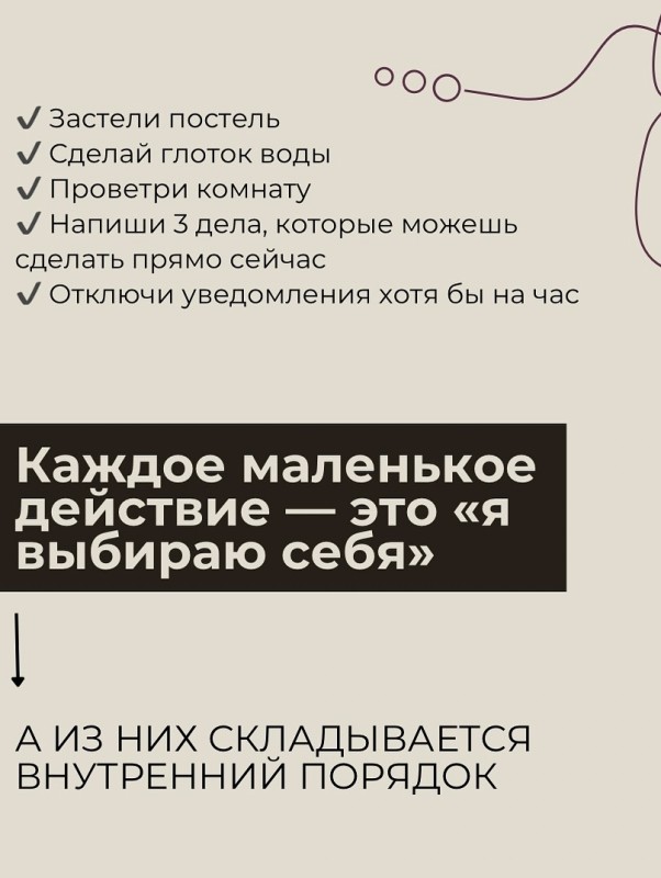 Маленькие шаги помогают вернуть ощущение устойчивости и направить фокус туда, где у нас всё ещё есть выбор ✨