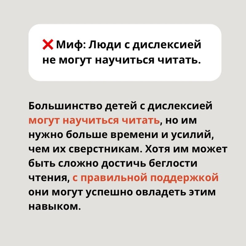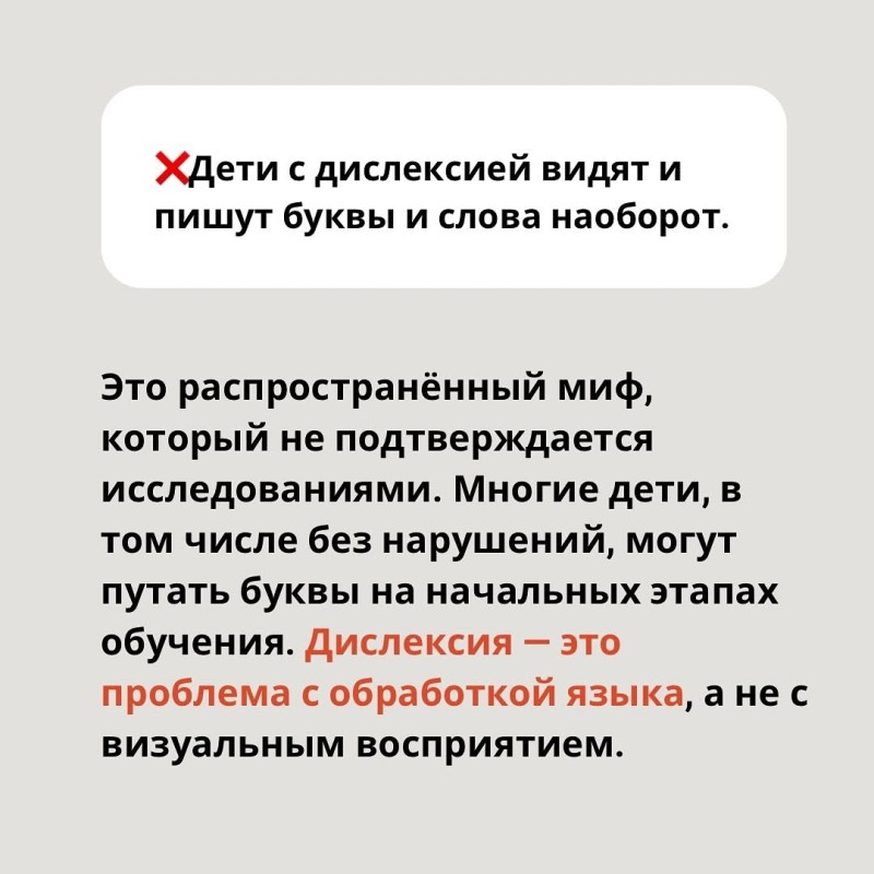 Эти мифы часто сбивают с толку родителей и заставляют их сомневаться в возможностях своего ребенка. Важно понимать, что дислексия — это трудность в обработке языка, и с ней можно успешно справиться с помощью специалистов.