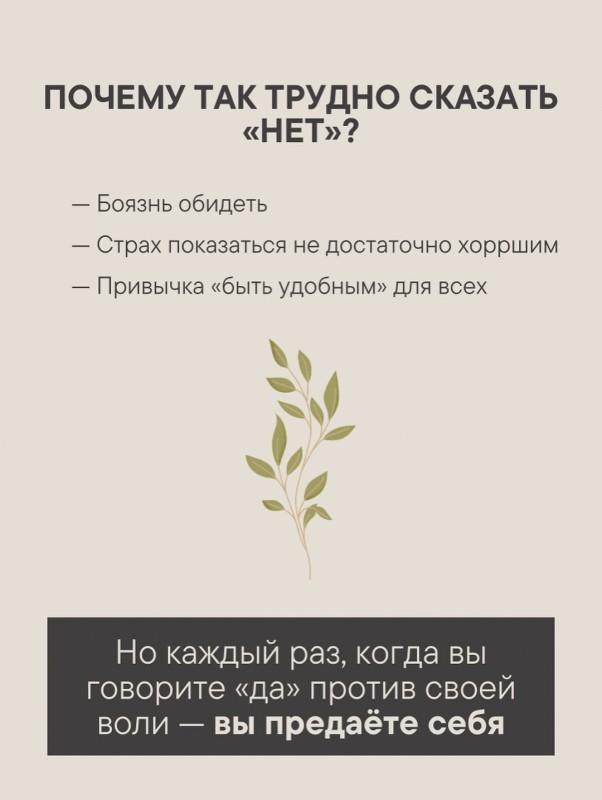 Но каждый раз, когда вы говорите «да» в ущерб себе — вы теряете частичку внутреннего уважения к себе.