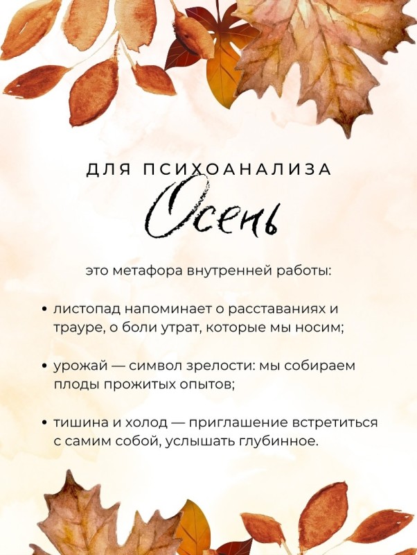 Так и в психике 🧠: мы носим в себе “старые листья” — воспоминания, вытесненные чувства, неразрешённые переживания. Они могут тяготить, создавать ощущение тяжести и пустоты.