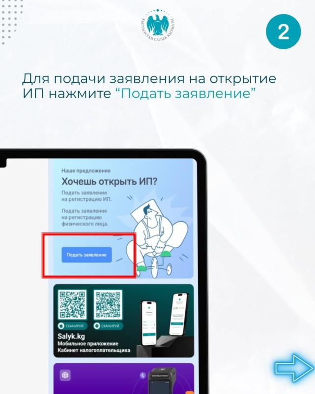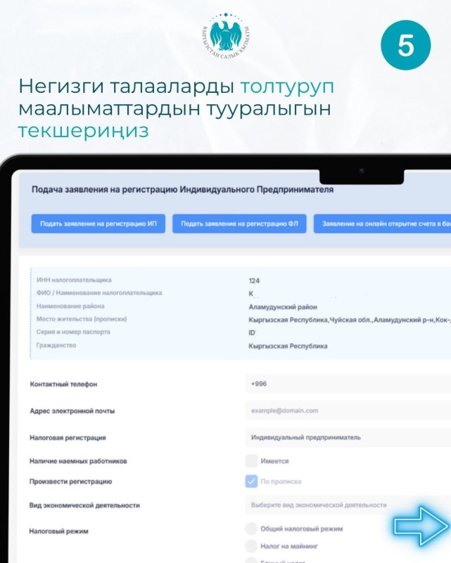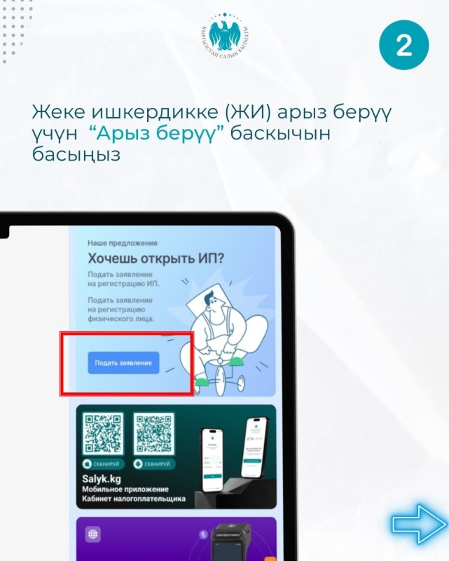 🔎 Салык төлөөчүнүн кабинетинен жеке ишкердикти каттоо үчүн эмне кылуу керек ?