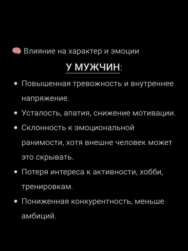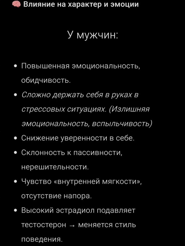Пролактин — гормон, который регулирует уровень стресса, либидо и работу половых гормонов. Когда он повышается, он начинает подавлять тестостерон и частично эстроген, вызывая целый комплекс эмоциональных и физических изменений.