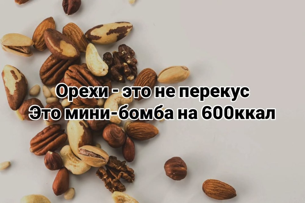 🔹 1 горсть орехов = 150–250 ккал