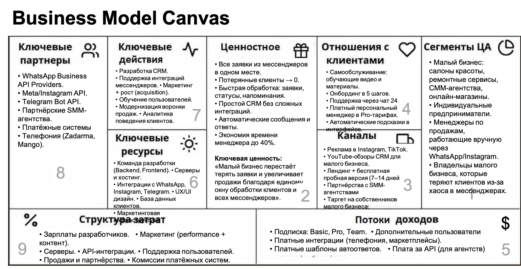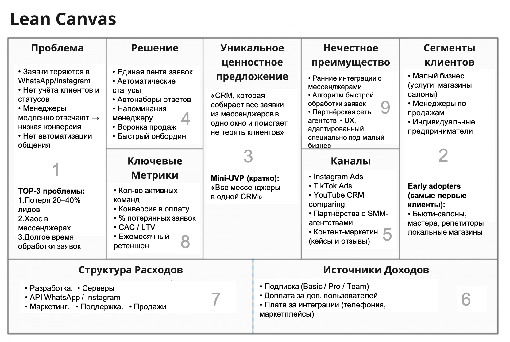 Продукт: CRM для малого бизнеса, объединяющая заявки из разных мессенджеров.