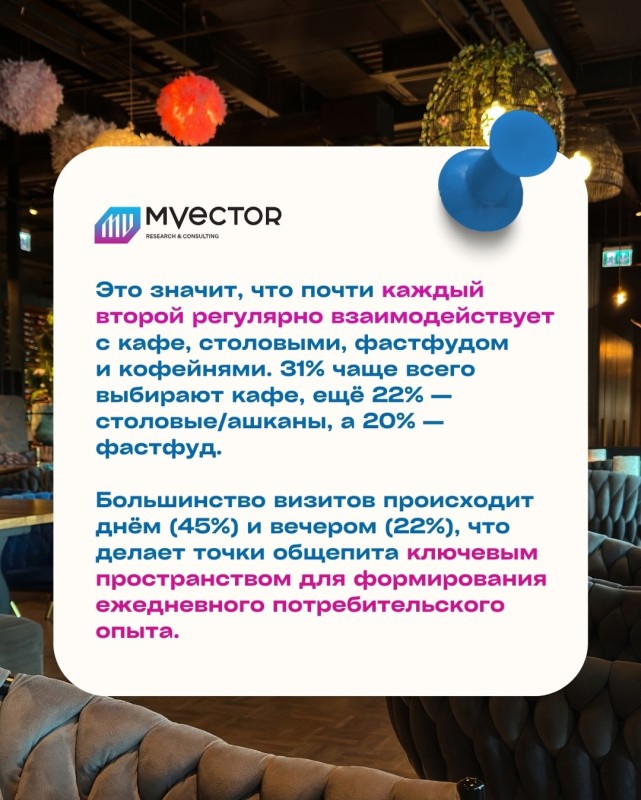 почти каждый второй регулярно взаимодействует с кафе, столовыми, фастфудом и кофейнями.