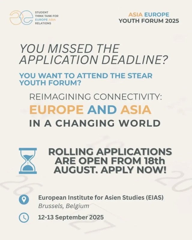 Ежегодный Молодежный форум STEAR Asia-Europe пройдет в Брюсселе 12–13 сентября 2025 года в Европейском институте азиатских исследований (EIAS).