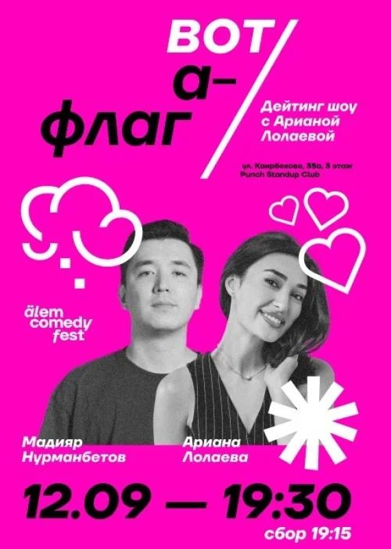 🎤Вотафлаг: дейтинг шоу от Арианы Лолаевой в рамках Alem Comedy Fest в Алматы🙌🏻