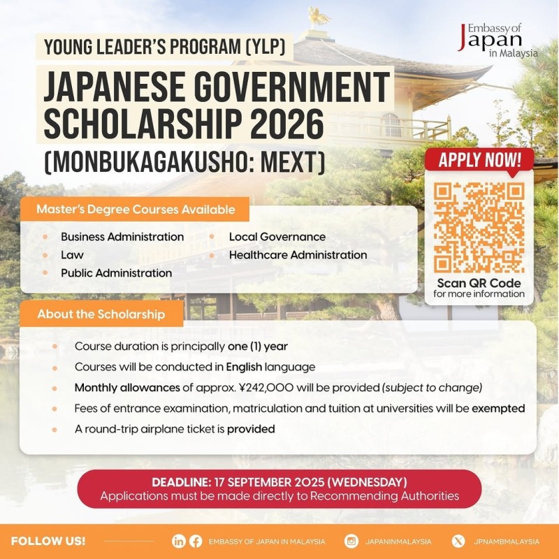 【Открыт приём заявок на стипендию MEXT 2026 – Программа молодых лидеров (YLP)】
