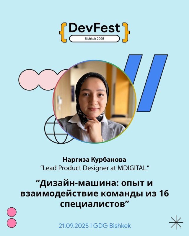 На DevFest они выступят с темой «Дизайн-машина: опыт и взаимодействие команды из 16 специалистов». Наргиза и Бек поделятся опытом, как сохранить синхронность и эффективность в большой команде, превратив 16 дизайнеров в единую систему благодаря взаимодействию, опыту и методологии Double Diamond. Участники узнают, какие инструменты и практики помогают выстраивать процессы, распределять зоны ответственности и предотвращать выгорание, сохраняя баланс между креативностью и структурой.