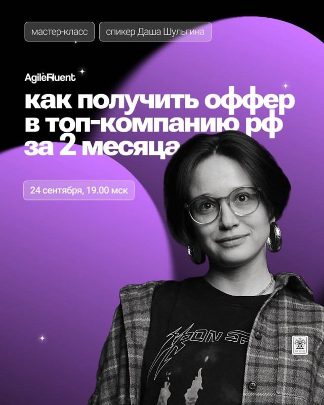 ✨Спикер — Даша Шульгина, фаундер и CEO AgileFluent! А значит встреча будет гарантированно полезной :)