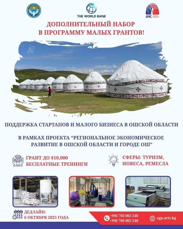 ❗️ Программа реализуется в Ошской области и городе Ош в рамках проекта «Региональное экономическое развитие». Мы поможем развитию стартапов и малого бизнеса посредством обучения и финансовой поддержки!