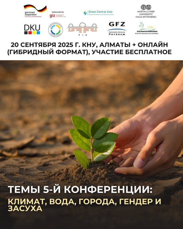 Конференция «Шелковый путь знаний: Смягчение и адаптация климата в эпоху социально-экологических неопределенностей» состоится 20 сентября 2025 года в Алматы в гибридном формате (очно и онлайн). Участие бесплатное, количество мест офлайн ограничено.