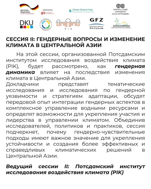Мы приглашаем ученых, политиков, практиков и представителей СМИ принять участие в конференции, чтобы обсудить ключевые вызовы и решения для Центральной Азии в условиях изменения климата.