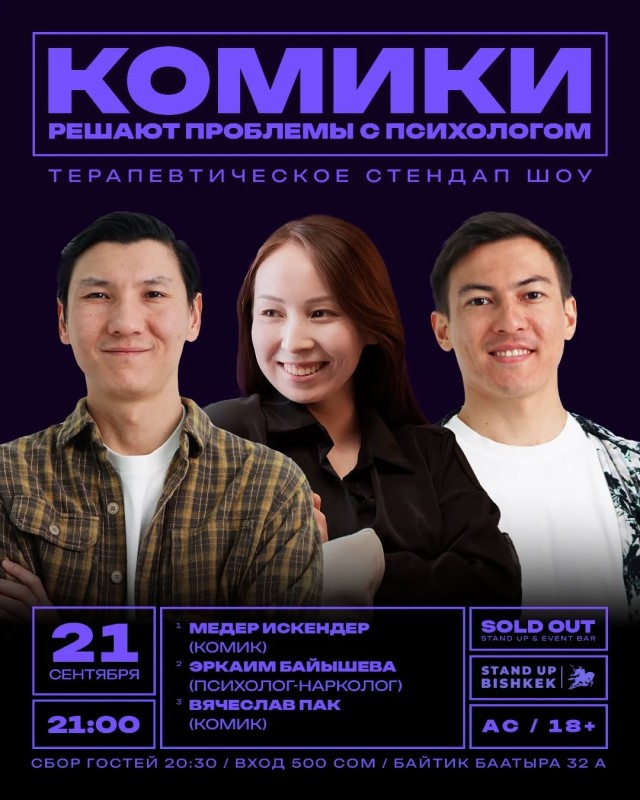 В этот вечер комики будут решать проблемы зрителей в шуточной форме, а психолог будет давать экспертное мнение по вашей проблеме.