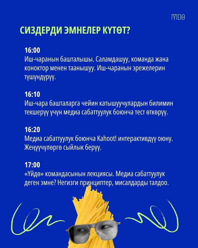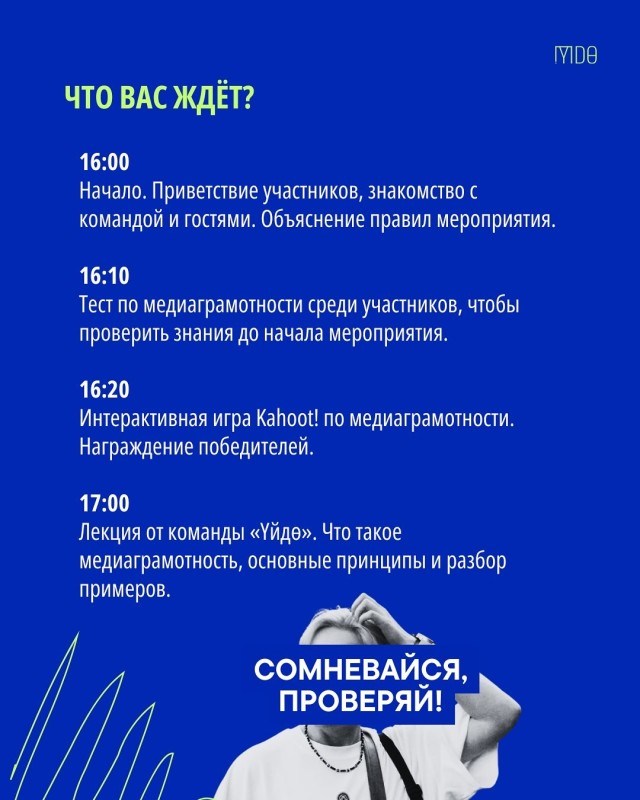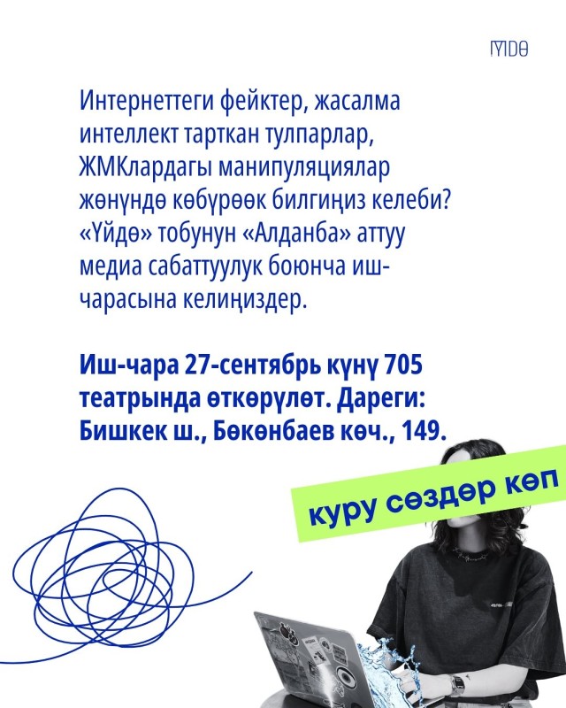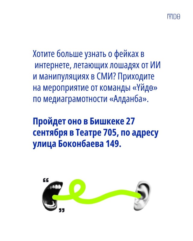 Привет! Команда «Үйдө» приглашает вас на мероприятие по инфокампании о медиаграмотности «Алданба».